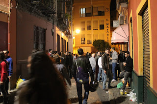After the show Mehdi again showed me the local Seville. Midnight, and we started out with tapas on the street, then headed to an area called Plaza de la Alfalfa for a drink. We walked through the Plaza (a square/courtyard area), turned a corner and bam! There would have been  more than 100 people crammed into a little street, drinking & talking. The bars are so tiny that you buy your drink then drink it on the street. Despite feeling about 10 years to old for the place, it was great! This time I avoided the red wine & had gin – they free pour alcohol here. Dangerous! We went to another couple of local bars before making it home about 3.30am. A little different to getting home at 3.30am in Australia, because you don’t start till midnight!