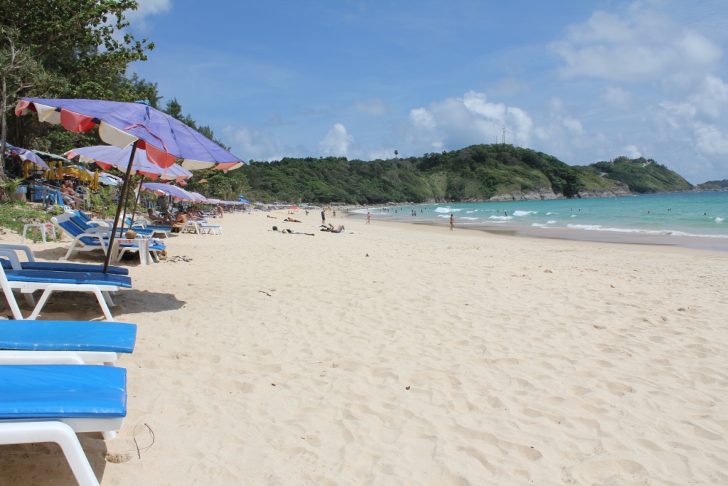 We stopped for brunch at Kata Beach, a large beach full of tourists. After being in quiet little Kamala it was bizarre to see so many foreigners….and pay tourist prices! The beach was quite pretty, but full people on deck chairs and others trying to sell you anything from massages to brooms. We sat on the beach in the rain under our umbrella until, after the third massive downpour, we decided it was time to move on.