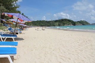 Sunday we continued exploring & after brunch at a gorgeous cafe (A spoonful of sugar) we ventured to Nai Harn beach. Now, Thailand has some amazing beaches but Nai Harn truly is beautiful. No jet skis or parasailing, just people swimming in turquoise water and a great view..of good looking men…we had finally found all the men on the island!  They were living at Nai Harn!  Needless to say we stayed for several hours…