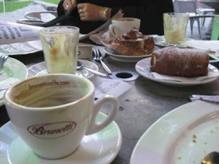 Bright & early Saturday morning we were up & keen for our day in the Yarra. Had breakfast at Brunetti’s, an Italian patisserie just down from Federation Sq. Sat with our gourmet breakfasts in the open air eating area, trying to stay warm.