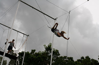 How does one prepare for running away to the circus? Mentally? Physically? I had done neither of these and yet Tuesday afternoon I found myself standing on the edge of a platform about to jump off…. I was to be the trapeze artist in this circus.